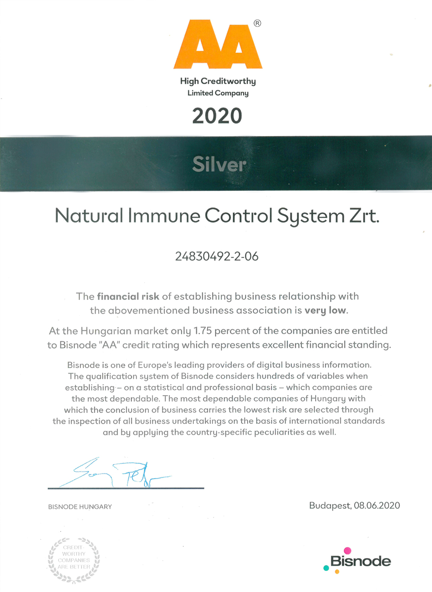 The production site, manufacturing the N.I.C.S. products, received in 2022 for the 11th time the GMP (Good Manufacturing Practice) certification. GMP is the internationally accepted, reliable and traceable standards in which the most effective guidelines, manufacturing procedures, control methods are collected in order to ensure the consistent product safety and quality. It is used generally in the pharmaceutical and food industries. National regulatory agencies coordinates inspections in a form of an audit in every single year to verify the compliance of the manufacturing sites.